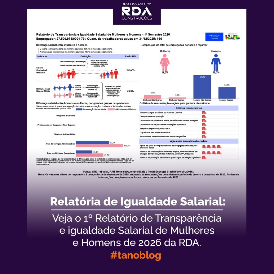 RDA Construções divulga seu 1º Relatório de Transparência e Igualdade Salarial de 2026